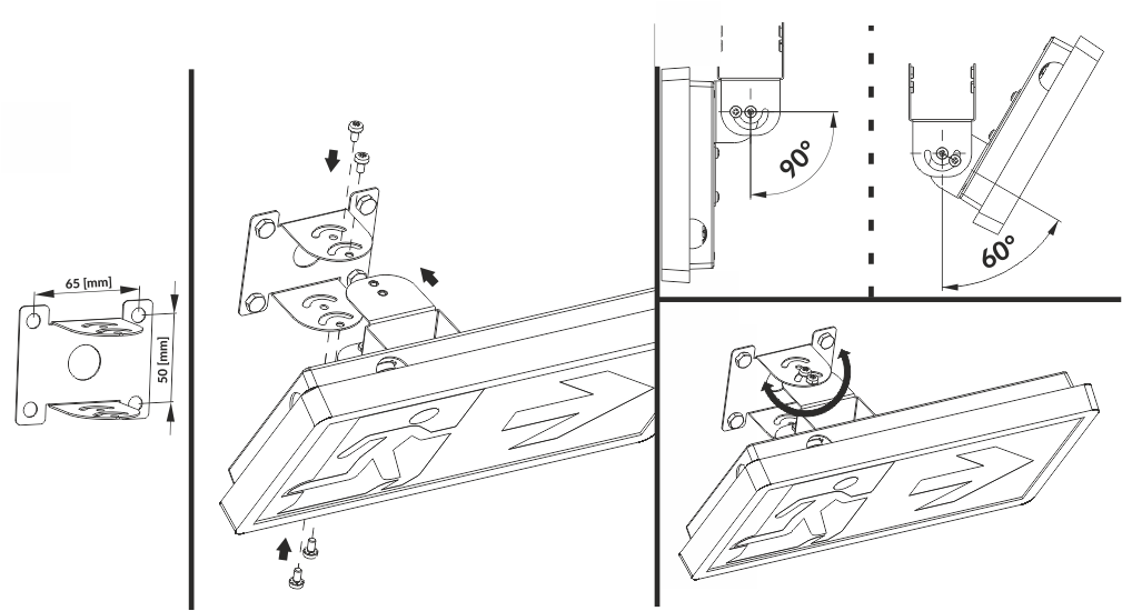 - Umożliwia montaż oprawy awaryjnej w różnych płaszczyznach