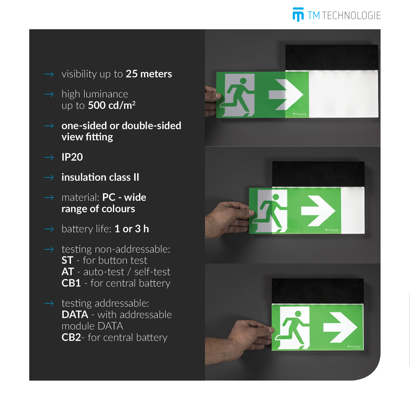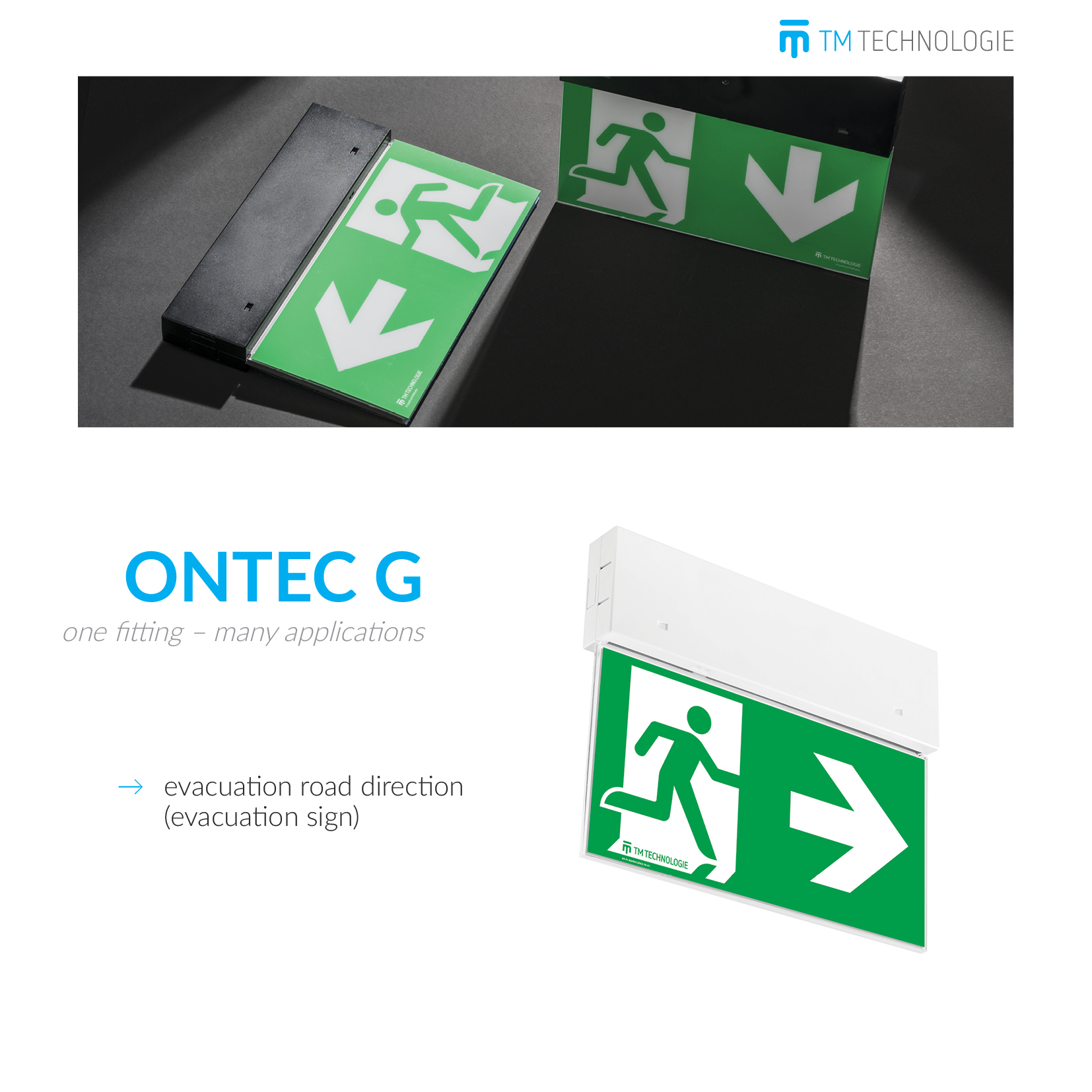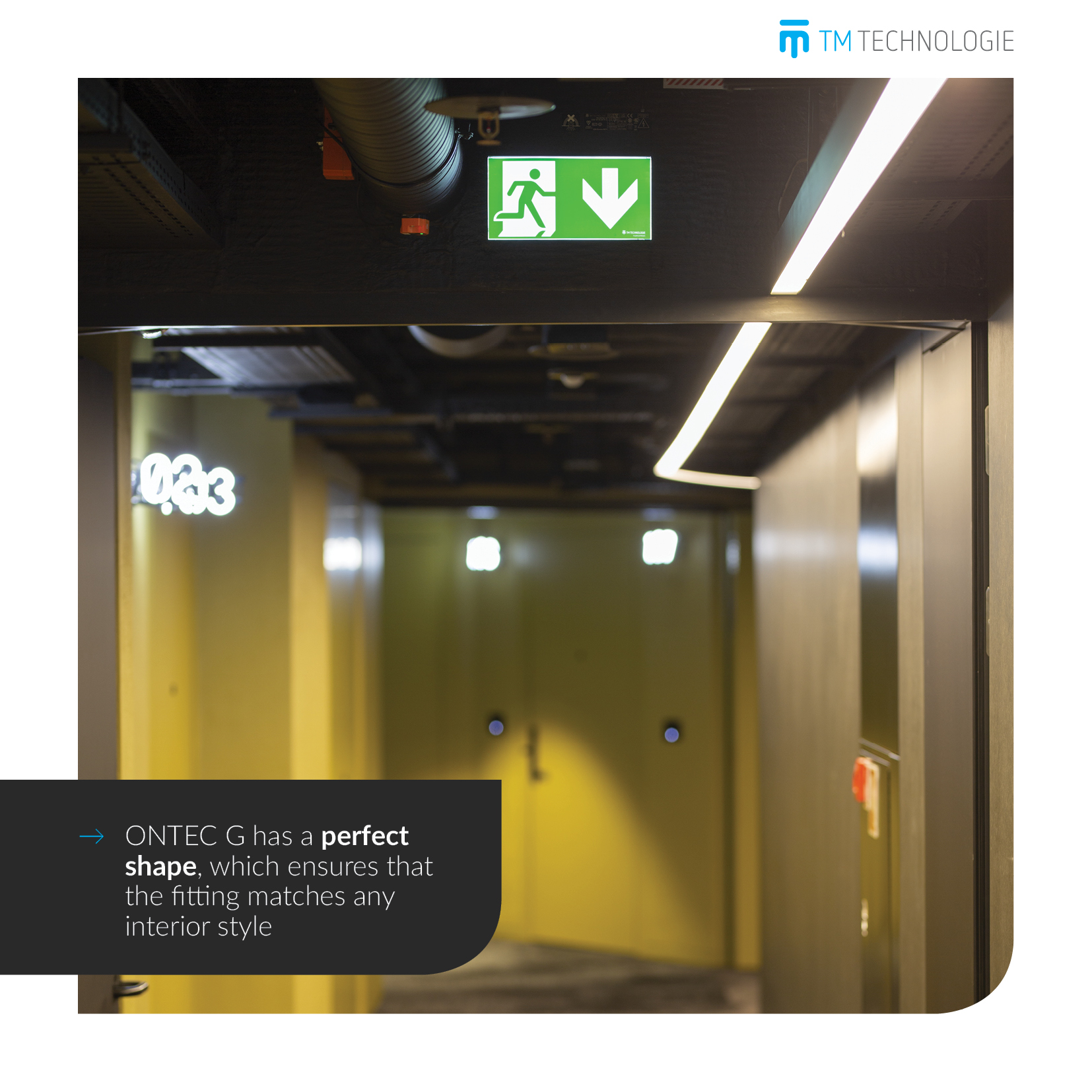 💡 ONTEC G is fitting for determining the direction of evacuation with a high luminance factor (up to 500cd / m2) achieved by the innovative technology of gradient selection for the LED light source. By using these advanced solutions in the field of lighting technology and special translucent materials, the evacuation sign can be seen from a distance of up to 25 m.