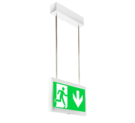 - oprawa pełni dwie funkcje – wyznaczanie kierunku ewakuacji oraz oświetlenie drogi ewakuacji